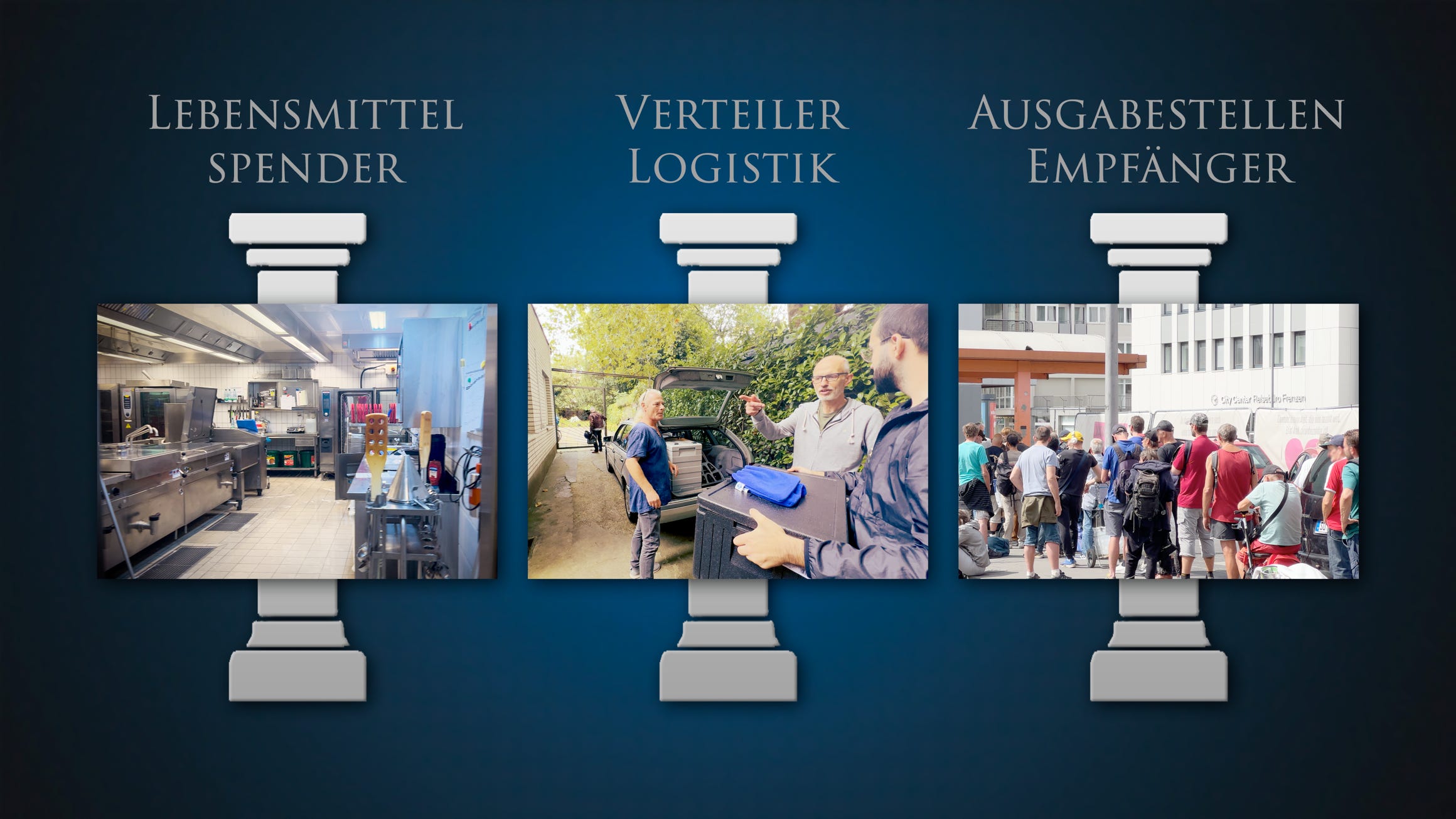 - Ausgabestellen, die die Speisen an bedürftige Menschen ausgeben